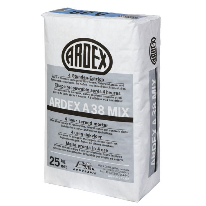 ARDEX A 38 MIX on ARDEX A 38 -sementistä valmistettu kuivabetoni 0–6 mm hiekalla. Voidaan käyttää ulko- ja sisätiloissa märkätilojen, parvekkeiden ja altaiden lattiavaluissa.