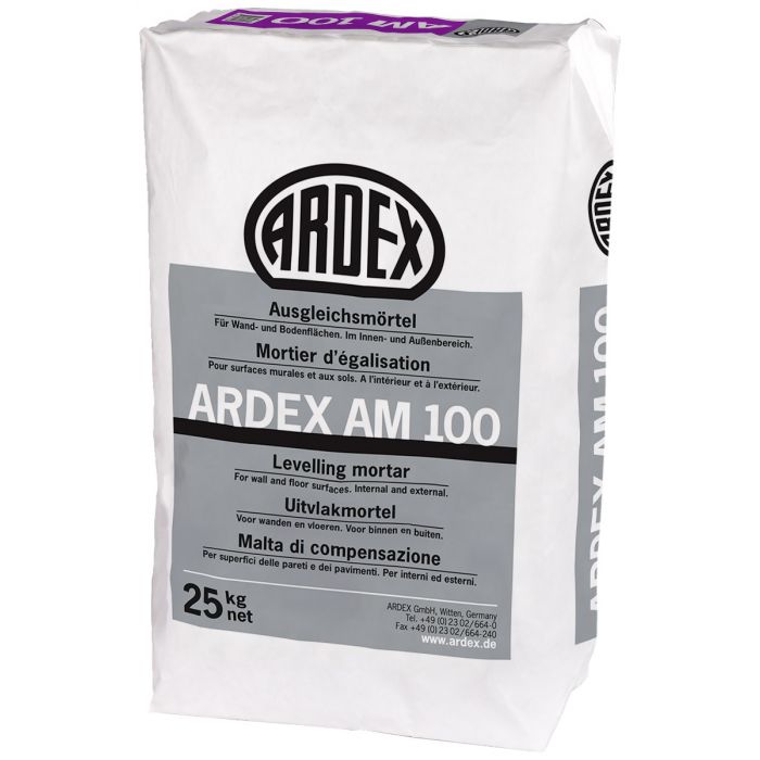 ARDEX AM 100 on sementtipohjainen täyttömassa erityisesti märkätiloihin. Voidaan käyttää ulko- ja sisätiloissa. Soveltuu betoni- ja muuratuille seinäpinnoille. Siporex-pinnoilla vain sisätiloissa alle 10 mm kerrospaksuuksiin. Voidaan käyttää betonisten lattiapintojen kallistuksiin, kun päälle tulee ARDEX 8+9 tai ARDEX 8+9 LW -vedeneriste.