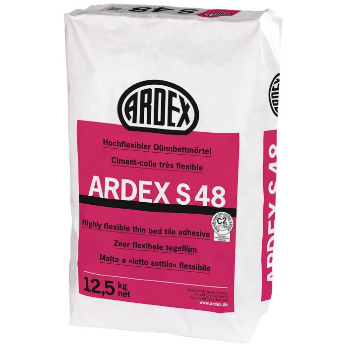 ARDEX S 48 on lattia- ja seinälaattojen, kaakeli- ja klinkkerilaattojen, luonnonkivien sekä solumuovieristelevyjen kiinnityslaasti. Voidaan käyttää sisätiloissa imukykyisille ja tiiviille pinnoille. Massiivibetonipintojen laatoittamiseen, kun betoni on kuivunut hyvissä olosuhteissa vähintään yhden kuukauden. Myös lattialämmitysrakenteisiin.