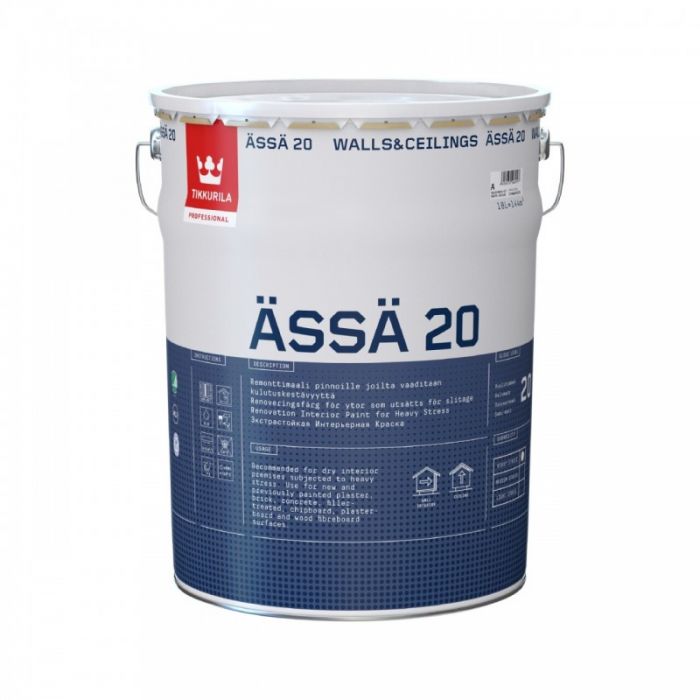 Ässä 20 on ammattilaisille suunniteltu. Tuote on helposti levitettävissä ruiskulla tai telalla. Erinomainen tartunta myös aiemmin maalatuille pinnoille. C-pohjan ansiosta valittavana laaja värivalikoima, jolloin voit valita saman tuoteperheen tuotteen sekä pohjaan että pintaan.