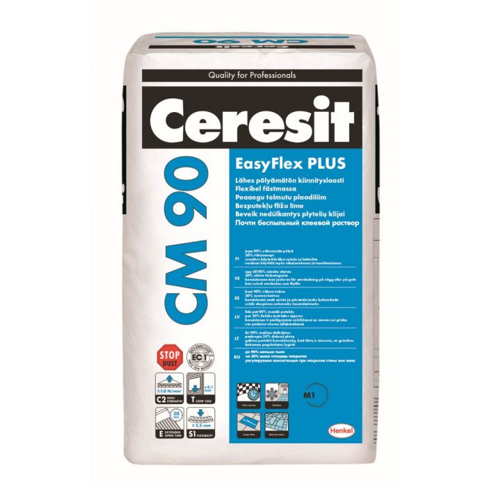 CM 90 soveltuu lämmitettyjen lattioiden, parvekkeiden, terassien, julkisivuihin, betonielementtien (vähintään 3 kuukautta vanhat) ja vaikeiden alustojen laatoitukseen.