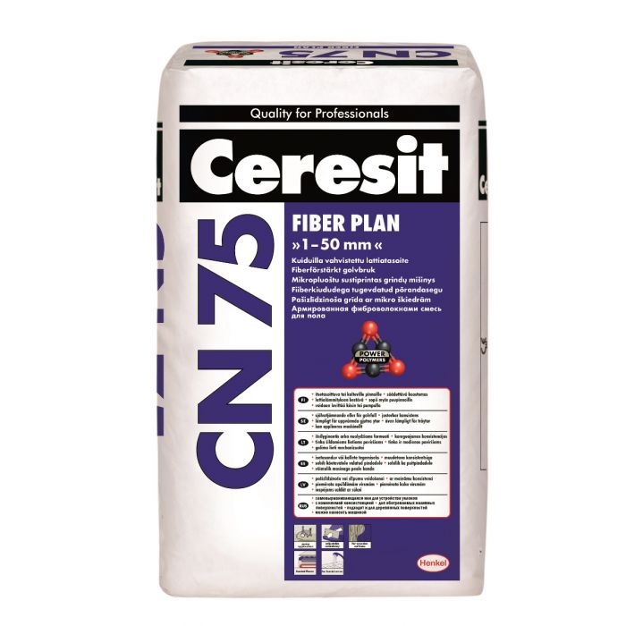 Ceresit CN75 on kuituvahvisteinen lattiatasoite joka sopii käytettäväksi betonilattioille, vanhoille keraamisille laatoille, puukuitu-ja kipsikartonkilevyille.