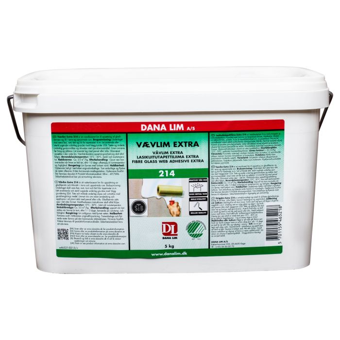 Lasikuitutapettiliima Extra 214 on vesipohjainen liima, joka on kehitetty lasikuitu -ja raskaampien tapettien asentamiseen kuivissa ja esilämmitetyissä tiloissa. Liimaa voidaan käyttää sekä imevillä että ei-imevillä pinnoilla, ja sillä on erinomaiset levitysominaisuudet. Erittäin hyvä alkutartunta helpottaa asennusta, eikä liima roisku telalla levitettäessä.