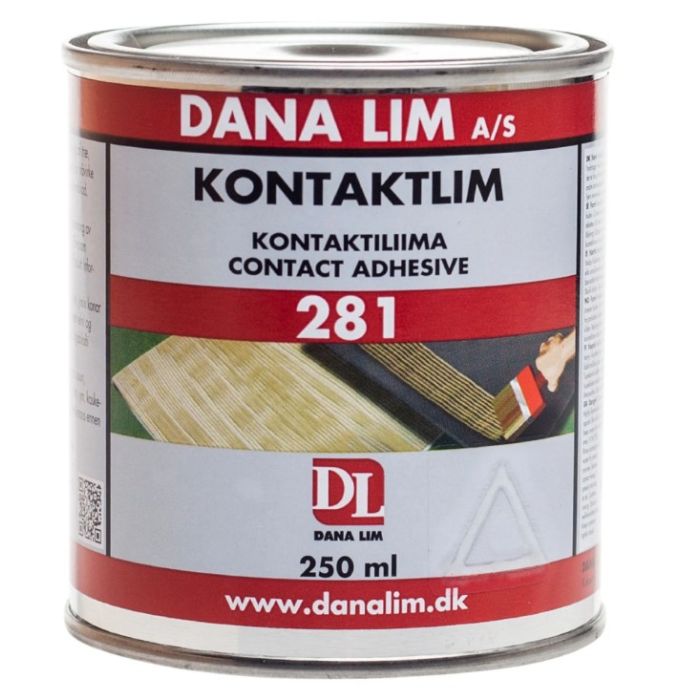 Kontaktiliima 281 on neopreeniin pohjautuva monikäyttöinen, helposti valuva kosketusliima tiiviiden pintojen liimaukseen sekä liimaukseen, jossa hetkessä kova kestävyys on toivottavaa. Kontaktiliima 281 sopii erityisesti puun, kuitu- ja lastulevyjen, muovilaminaattien, huovan, luonnon- ja tekokumin, nahkan, vaahtotuotteiden, betonin, lasin, metallien, ym. liimaukseen. Liimaa ei voida käyttää polystyreenivaahtoon (flamingo), silloin on käytettävä vesiliukoista Akva Kontaktiliima 287 -kosketusliimaa. Liima on vedenkestävä ja sen lämpötilakestävyys on noin -40oC - +70oC, riippuen voimakkuuden tarpeesta. (Kontaktiliima 281 on laadultaan termoplastinen liima, toisin sanoen kesto vähenee kohoavan lämpötilan mukaan). Kontakthærder 924 -kovettajatuotteen 5%:n lisääminen nostaa lämpölujuutta noin +150 oC:een.