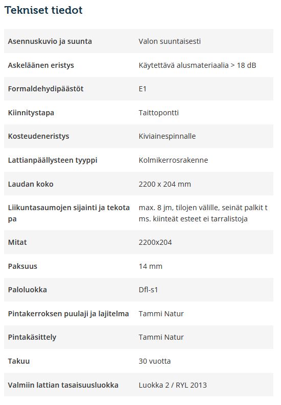 Pinnassa vaaleaksi sävytetty extramattalakka. 2-sauvainen Tammiparketti, jonka pitkät sauvat antavat kodin kaikkiin tiloihin luonnollista puulattian näyttävyyttä.
