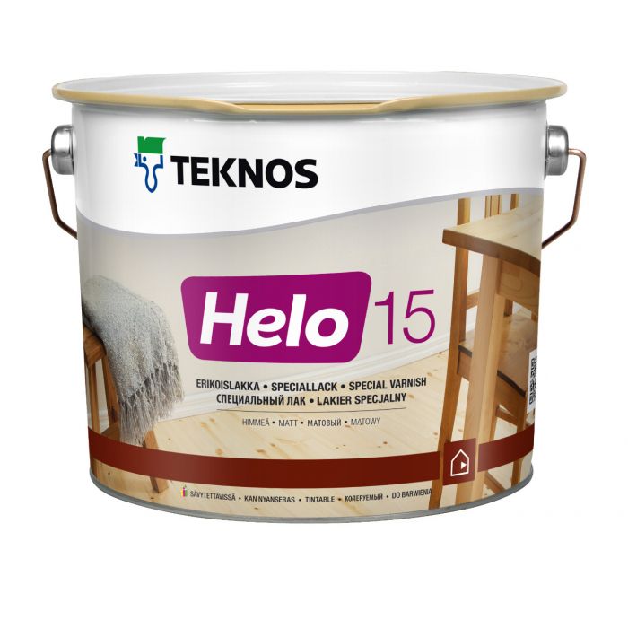 HELO 15 on himmeä, nopeasti kuivuva uretaanialkydilakka, jolla on hyvät kestävyysominaisuudet. Lakka soveltuu kaikkeen vaativaan puupintojen lakkaukseen sisällä ja ulkona. MaalausRYL 2012:n mukaiset maalaustuoteryhmät 521, 541 ja 644. Kiiltoryhmä 5, himmeä.