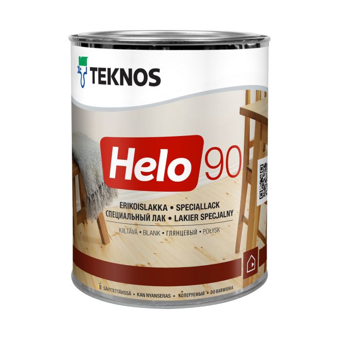 HELO 90 on kiiltävä, nopeasti kuivuva uretaanialkydilakka, jolla on hyvät kestävyysominaisuudet. Lakka soveltuu kaikkeen vaativaan puupintojen lakkaukseen ulkona ja sisällä. MaalausRYL 2012:n mukaiset maalaustuoteryhmät 521, 541 ja 644. Kiiltoryhmä 1, täyskiiltävä.