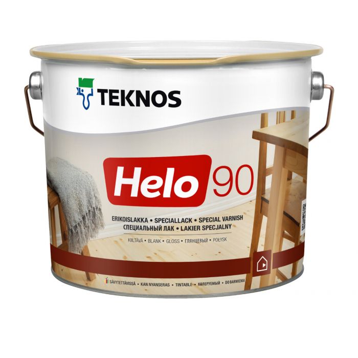 HELO 90 on kiiltävä, nopeasti kuivuva uretaanialkydilakka, jolla on hyvät kestävyysominaisuudet. Lakka soveltuu kaikkeen vaativaan puupintojen lakkaukseen ulkona ja sisällä. MaalausRYL 2012:n mukaiset maalaustuoteryhmät 521, 541 ja 644. Kiiltoryhmä 1, täyskiiltävä.