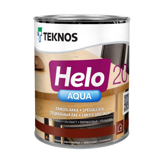 HELO AQUA 20 on puolihimmeä vesiohenteinen polyuretaanidispersioon perustuva erikoislakka puupintojen lakkaukseen sisällä ja ulkona. MaalausRYL 2012:n mukaiset maalaustuoteryhmät 512, 531, 641 ja 642. Kiiltoryhmä 4, puolihimmeä.