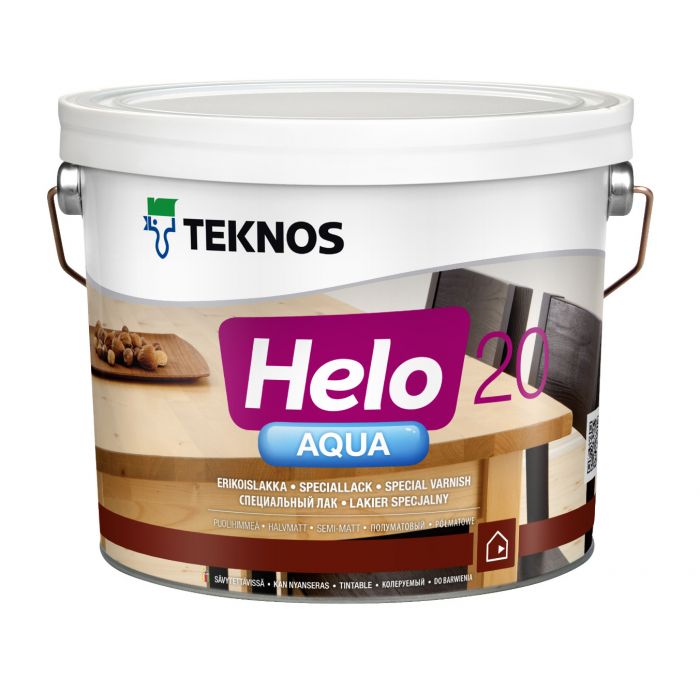 HELO AQUA 20 on puolihimmeä vesiohenteinen polyuretaanidispersioon perustuva erikoislakka puupintojen lakkaukseen sisällä ja ulkona. MaalausRYL 2012:n mukaiset maalaustuoteryhmät 512, 531, 641 ja 642. Kiiltoryhmä 4, puolihimmeä.