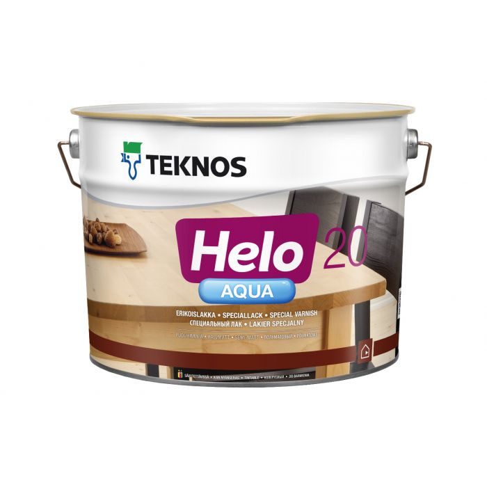 HELO AQUA 20 on puolihimmeä vesiohenteinen polyuretaanidispersioon perustuva erikoislakka puupintojen lakkaukseen sisällä ja ulkona. MaalausRYL 2012:n mukaiset maalaustuoteryhmät 512, 531, 641 ja 642. Kiiltoryhmä 4, puolihimmeä.