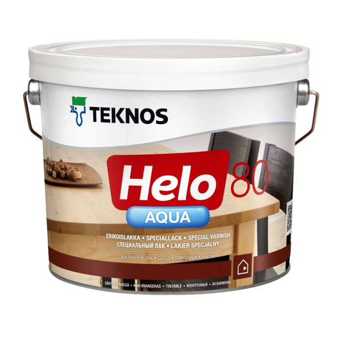 HELO AQUA 80 on kiiltävä vesiohenteinen polyuretaanidispersioon perustuva erikoislakka puupintojen lakkaukseen sisällä ja ulkona. MaalausRYL 2012:n mukaiset maalaustuoteryhmät 512, 531, 641 ja 642. Kiiltoryhmä 2, kiiltävä. Käyttö: Lauta- ja parkettilattiat sekä portaat sisällä, puukalusteet sisällä ja ulkona.
