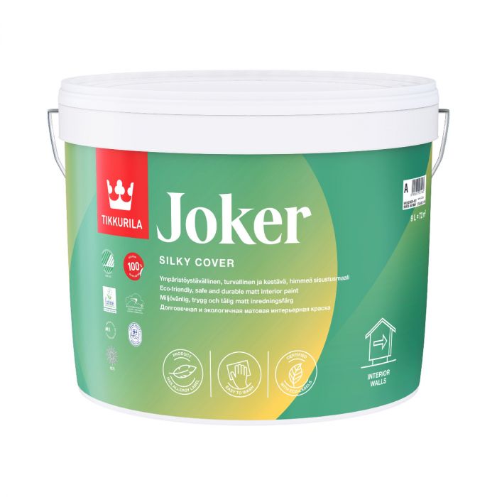 Jokerilla maalaat olohuoneet ja makuuhuoneet silkinhimmeäksi. Jokeria voit sävyttää tuhansiin eri Tikkurilan värisävyihin.