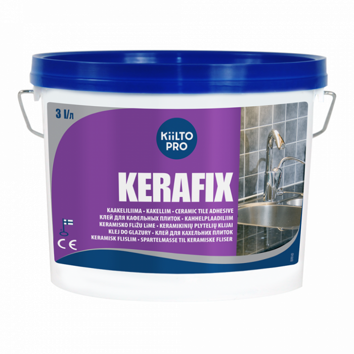 Keraamisten laattojen kiinnitykseen seinäpinnoilla sisätiloissa. Kiilto Kerafix sopii myös polystyreeni- ja PU-vaahtolevyjen liimaukseen. Ei jatkuvasti veden kanssa tekemisissä oleviin laatoituksiin.