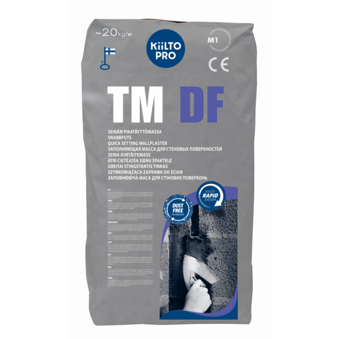 Kiilto TM DF on nopeasti kovettuva täyttömassa kiviaineksisille sisäseinäpinnoille. Valmis pinta voidaan laatoittaa tai käsitellä Kiillon vedeneristeillä. Se voidaan tarvittaessa myös ylitasoittaa muilla Kiilto seinätasoitteilla käyttökohteesta riippuen.