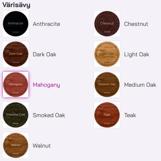 - Kaikkien puupintojen ja puulaatujen sävyttämiseen.