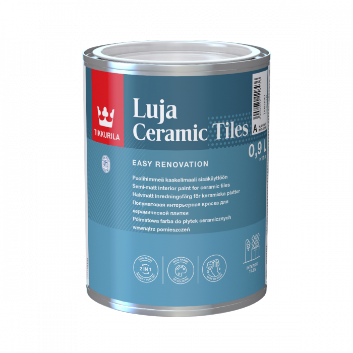 Erinomainen tarttuvuus ilman erillistä pohjamaalia. Soveltuu himmeille ja kiiltäville kaakeleille ja laatoille. Luja Ceramic Tiles -maalilla uudistat kaakelit helposti ja nopeasti.