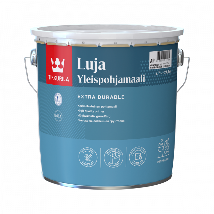 Luja Yleispohjamaalissa on maalipintaa suojaava homeenestoainetta. Paras lopputulos kosteisiin tiloihin Luja-pintamaalien kanssa.