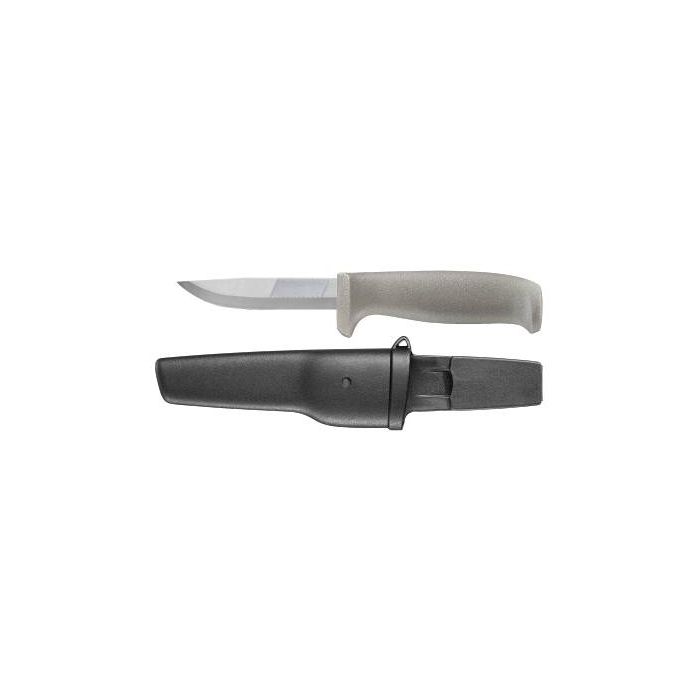 LVI-puukko. Mattakromattu terä ja viila reunan puhdistukseen.