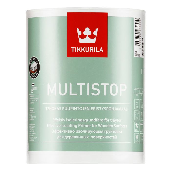 Multistop torjuu oksakohtien ja muiden tummentumien läpilyönnit, sekä peittää kellastuneen ja tummentuneen vanhan puupinnan. Erityinen teknologia sitoo puun uuteaineet pohjamaalikerrokseen, jolloin pintamaali jää puhtaaksi.