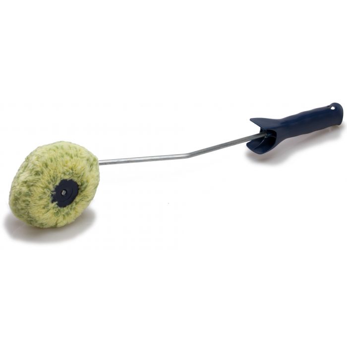 Telavarsi ja tela nurkkien maalaamiseen. Nurkkien maalaamiseen kehitetty tela helpottaa työtä huomattavasti ja maalausjäljestä tulee tasainen. |
