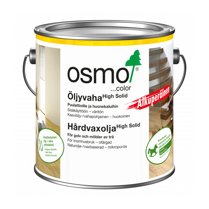 Sisäkäyttöön tarkoitetut Osmo Color Öljyvahat perustuvat nopeasti uusiutuviin kasviraaka-aineisiin, jotka imeytyvät puun pintaan säilyttäen puun luonnollisen lämmön ja tunnun. Öljyvahattu pinta kestää hyvin normaalia kulutusta ja sen ylläpito ja hoito on yksinkertaista.