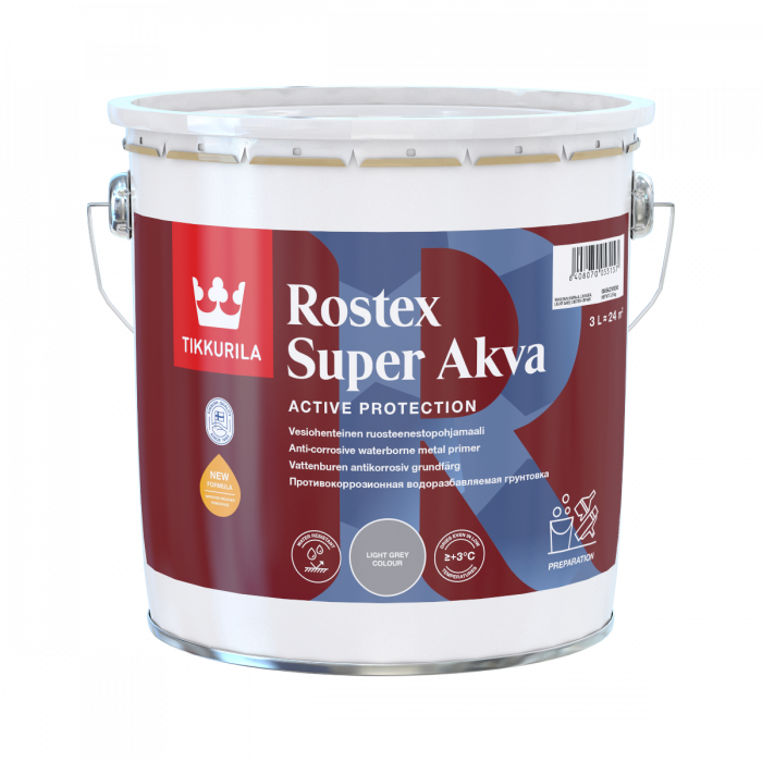 Rostex Super Akva vaalean harmaa ruosteenestopohjamaali 3L