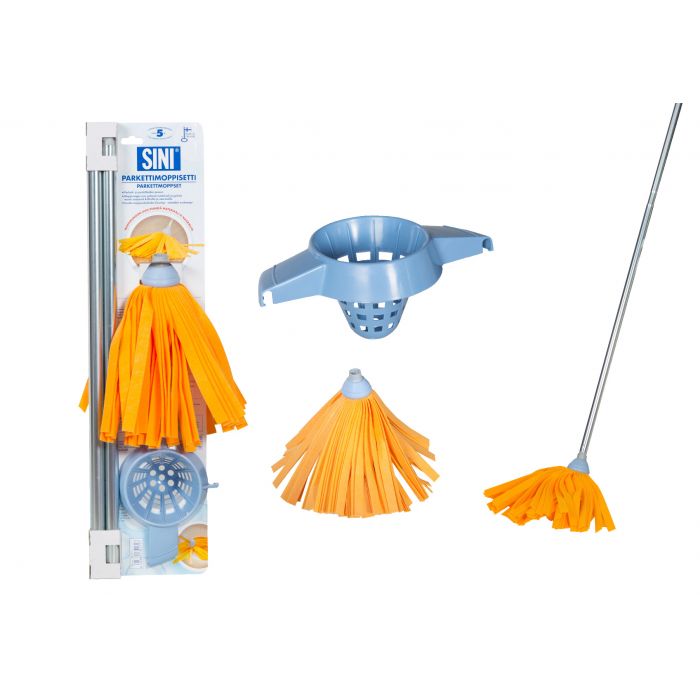 Moppi on helppo puristaa riittävän kuivaksi kuppipuristimessa, eikä se jätä vesiraitoja lattiaan. Moppi on kevyt käsitellä ja tehokas myös nurkkien ja jalkalistojen puhdistamisessa. Setti sisältää Parkettimopin ja 140cm pitkän sinkityn teräsvarren.