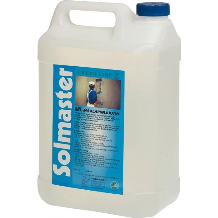 Solmaster ML Maalarinliuotin on maalauksen esipesuun tarkoitettu puhdistusaine. Soveltuu kaikille emäksisyyttä kestäville pinnoille ulko- ja sisäkäyttöön.