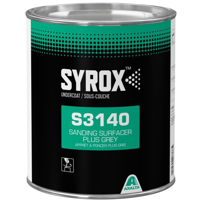 S3140 harmaa Syrox Surfacer Plus -pohjamaali. Korkea kiinteäainepitoisuus ja erinomainen hiottavuus. käytettäessä yhdessä S3080 Non-Sanding Converter -lisäaineen kanssa, Syrox Surfacer Plus -pohjamaalia voidaan käyttää myös märkää-märälle -tuotteena. Lisä
