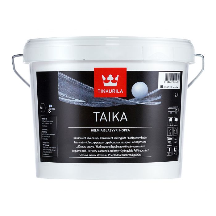 Käytetään Tikkurilan akrylaattiseinämaalin, esim. Harmony sisustusmaalin päällä. Koska Taika helmiäislasyyri on läpikuultava, niin alla olevan maalin (esim. Harmonyn) väri vaikuttaa ratkaisevasti lopputulokseen. Taika-värikartasta löydät suosituksen maalin värin valintaan. Hyvä valaistus korostaa efektipinnan näyttävyyttä.