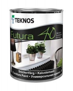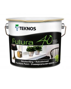 Futura Aqua 40 Puolikiiltävä kalustemaali puulle ja metallille 9LFUTURA AQUA 40 Puolikiiltävä kalustemaali puulle ja metallille Vesiohenteinen uretaani-alkydipohjainen pintamaali sisä- ja ulkokäyttöön irto- ja kiintokalusteille. MaalausRYL 2012:n mukaiset ma...290,50 €32,28 € / litra