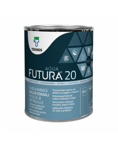Futura Aqua 20 Puolihimmeä kalustemaali puulle ja metallille 0,9LFUTURA AQUA 20 Puolihimmeä kalustemaali puulle ja metallille Vesiohenteinen uretaani-alkydipohjainen pintamaali sisä- ja ulkokäyttöön irto- ja kiintokalusteille. MaalausRYL 2012:n mukaiset maal...41,50 €46,11 € / litra