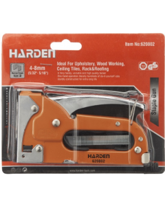 Harden niittipistooli, vahvalla metallikotelolla. Niittikoko 4-8 mm. Ergonominen muotoilu tarjoaa mukavampaa työskentelyä.