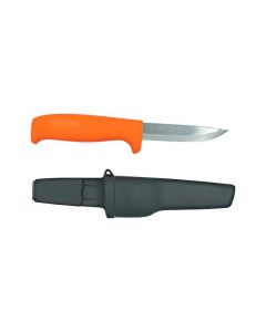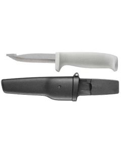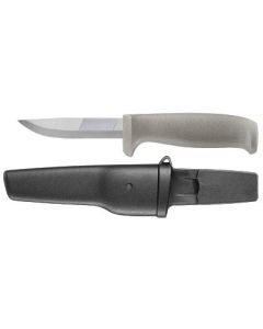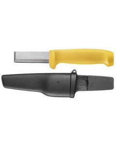 LVI-puukko. Mattakromattu terä ja viila reunan puhdistukseen.