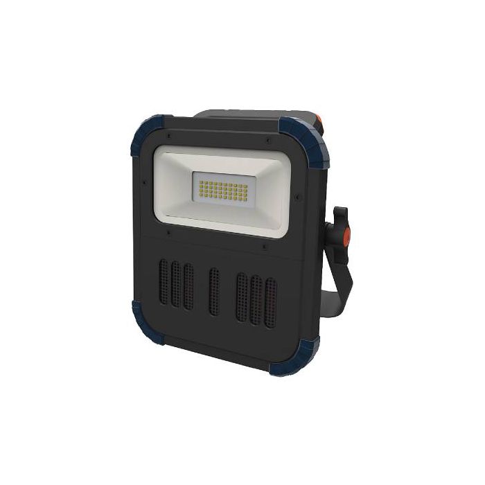 Ladattava työvalaisin suunnatulla valolla. SMD-tekniikan ansiosta lampun valo on laadukasta, vähemmän häikäisevää ja energiatehokasta. Lampussa on myös tehokas Bluetooth-kaiutin, akkuvarauksen ilmaisin, vaihdettava akku ja USB-liitäntä. Iskunkestävyys IK08. Mukana akku ja latauslaite.