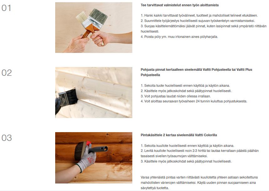 Uuden lamellihirsipinnan ja lautaverhoilun käsittely Valtti Colorilla