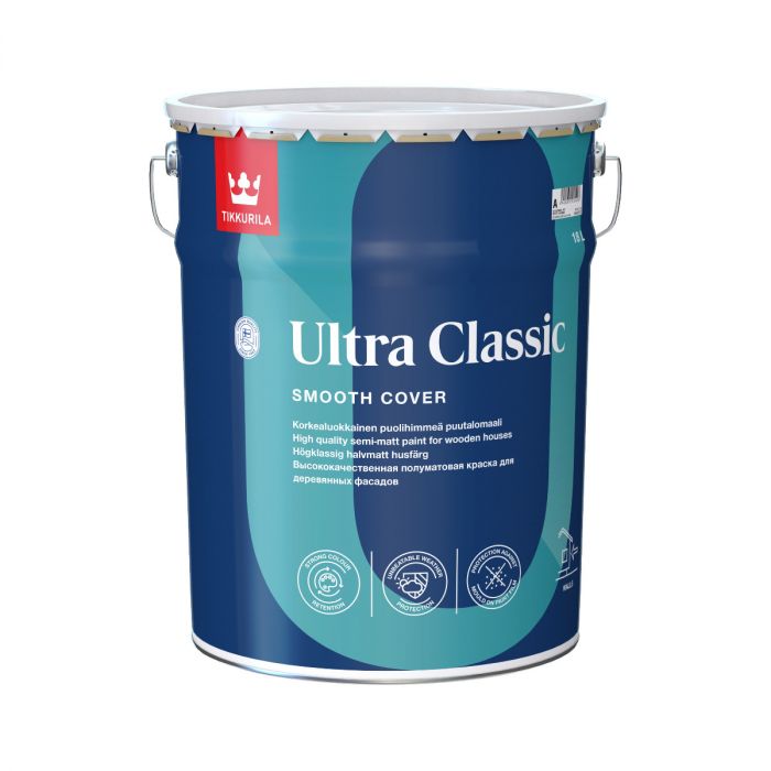 Ultra Classicilla saat kaunista puolihimmeää maalipintaa, joka vastaa vanhan Ultra talomaalin kiiltoa. Värit taloosi valitset helposti Puutalot-värikartasta.