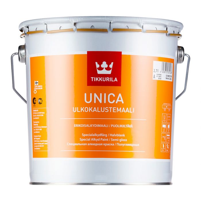Unica Ulkokalustemaali on puolikiiltävä, kestävä erikoisalkydimaali puu- ja metallipinnoille sisällä ja ulkona. Maali soveltuu myös useille muovipinnoille, esimerkiksi lasikuitu- ja muoviveneisiin (ei upotusrasitukseen).