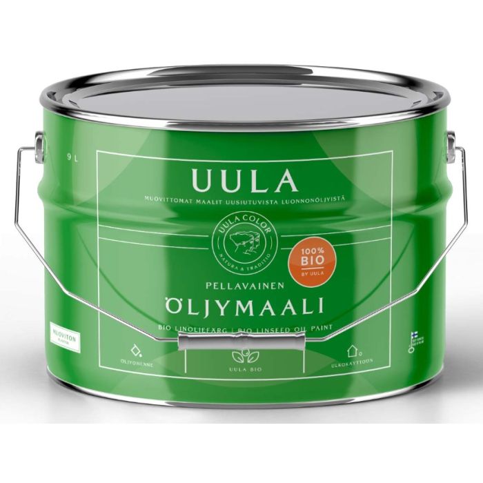 Uula Pellavainen Öljymaali on kestävä ja luotettava pellavaöljymaali ympäristötietoiseen ulkomaalaukseen. Pellavaöljystä ja kasvipohjaisesta havupuutärpätistä valmistettu biopohjainen maali ei sisällä lainkaan maaöljyn petrokemiallisia johdannaisia. Erittäin peittokykyinen maali on ihanteellinen ja helppokäyttöinen, sillä yksi maalauskerta pohjamaalauksen päälle antaa kauniin ja tasaisen pinnan.