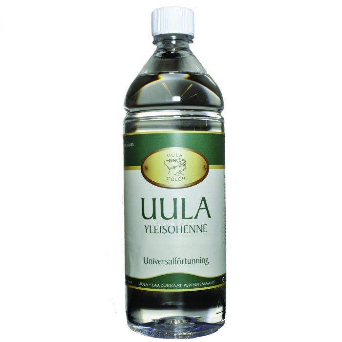 Uula Yleisohenne liuotinohenteisille sisämaaleille, ootrausvärien ohentamiseen, työvälineiden pesuun sekä tahrojen kuten, pien, tervan ja rasvan poistoon. Uula Yleisohenne sopii Uula Ovi- ja ikkunamaalin, Uula Puulattiamaalin, Uula Öljykuullon, Uula Sisäöljymaalin sekä Uula Pellavaöljymaalin ohentamiseen sisätiloissa. Vähemmän haitallinen vaihtoehto lakkabensiinille ja tärpätille. |