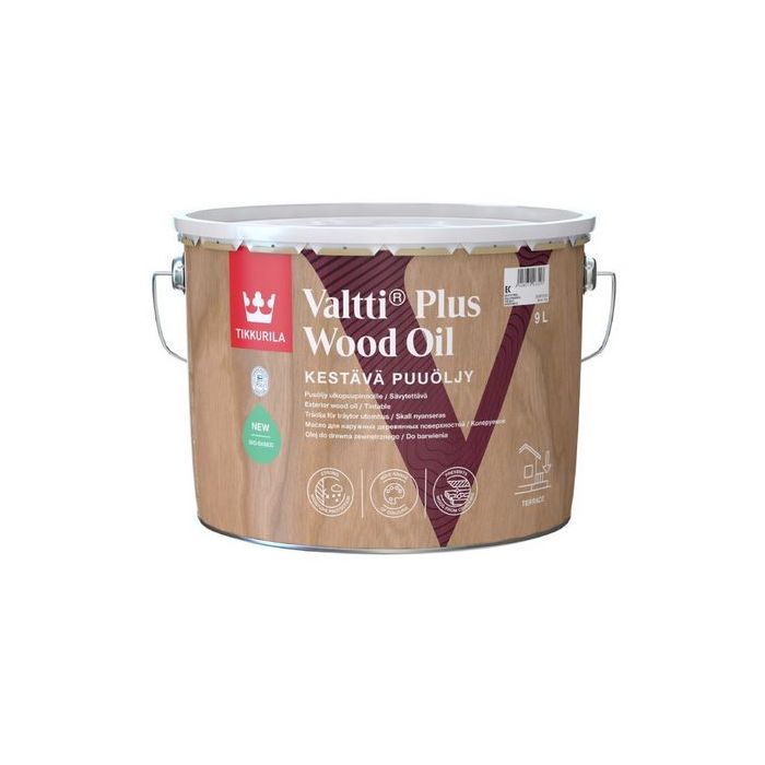Puuöljy ulkopuupinnoille. Estää puun halkeilua. Suojaa erinomaisesti kosteudelta ja tekee puupinnasta säänkestävän. Sävytettävissä laajaan värivalikoimaan. Valtti Plus Wood Oilin orgaanisen hiilen kokonaismäärästä 75 % on korvattu biopohjaisella osuudella (mitattu standardin ASTM D6866-18 mukaisesti), mikä tarkoittaa, että 18 % tuotteen kokonaispitoisuudesta on biopohjaista.