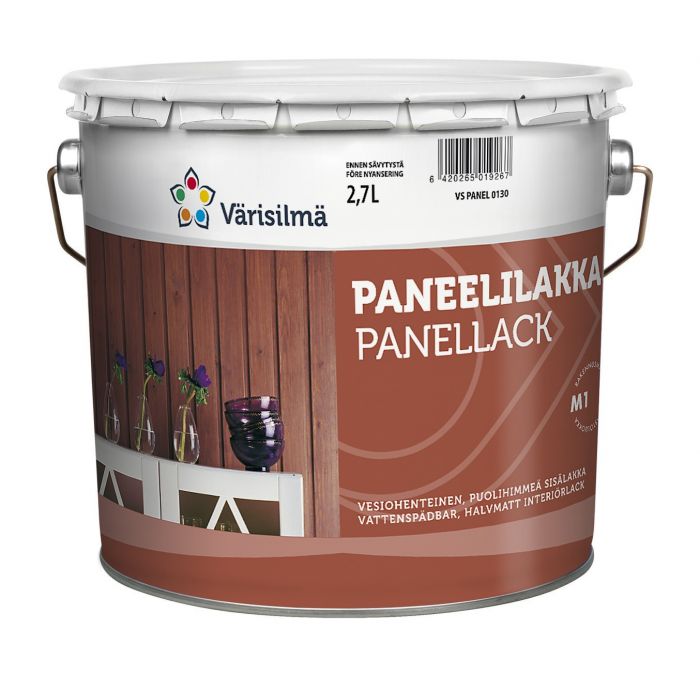 VÄRISILMÄ PANEELILAKKA on vesiohenteinen, kellastumaton, UV-suojattu akrylaattilakka. Se soveltuu puisille katto- ja seinäpaneeleille kuivissa sisätiloissa. Lakkapinnan vedenkestävyys on hyvä ja se kestää pyyhkimistä kostealla kankaalla.