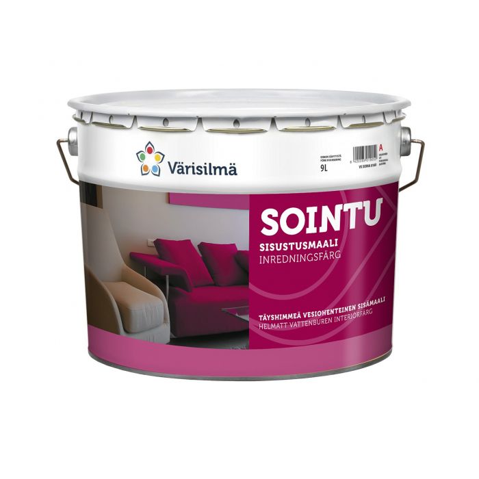 VÄRISILMÄ SOINTU- sisustumaali on täyshimmeä akrylaattimaali kaikille kodin tilojen kuiville sisäseinille. Käy sekä uusille että aikaisemmin maalatuille pinnoille. Kestää hyvin puhdistamista. SOINTU on myös helppo levittää ja kuivuu nopeasti.