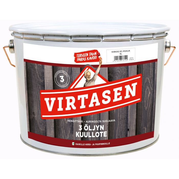 Kestävä Virtasen 3 Öljyn Kuullote on kehitetty erityisesti hirsirakennusten ja vastaavien kuultavaan pintakäsittelyyn. Tuote voidaan sävyttää kuullote- ja puuöljyvärikarttojen mukaan.