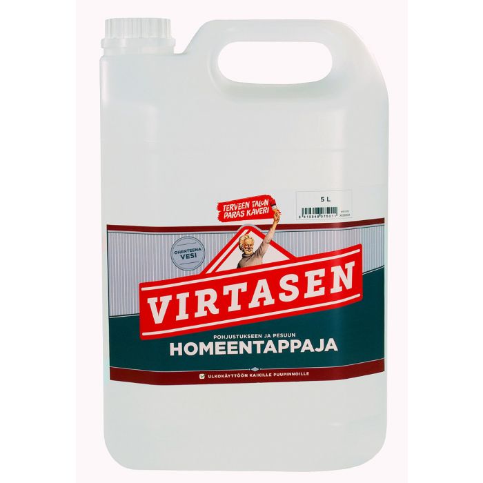 Virtasen Homeentappaja on homepesuaine sekä homeenestopohjuste, jota käytetään käsitellyillä ja käsittelemättömillä puu- ja kiviainespinnoilla ulkona. Se ehkäisee tehokkaasti homeen syntymistä uusille maalatuille pinnoille.