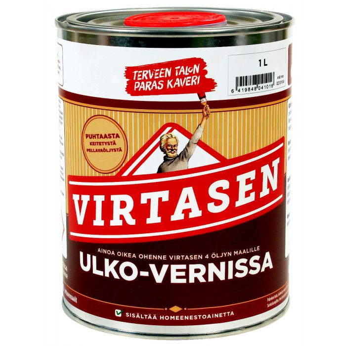 Aimon salainen resepti on jo vuodelta 1963 ja maalin kestävyys on testattu saariston tuulissa ja tuiskuissa. Vuosikymmenten kokemuksella uskallamme luvata että Virtasen hengittävä Neljän luonnonöljyn öljymaali toimii kaikkialla. Virtasen 4 Öljyn öljymaali on 100% muoviton ja luonnollisesti hengittävä aito Suomessa valmistettu öljymaali.