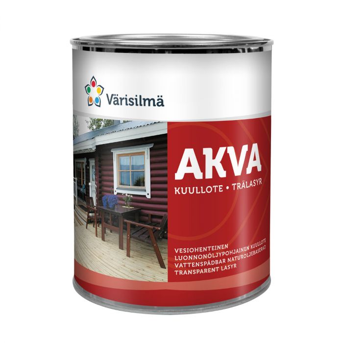 Värisilmä Akva Kuullote on ulkokäyttöön tarkoitettu vesiohenteinen kuullote, joka imeytyy puupintaan.