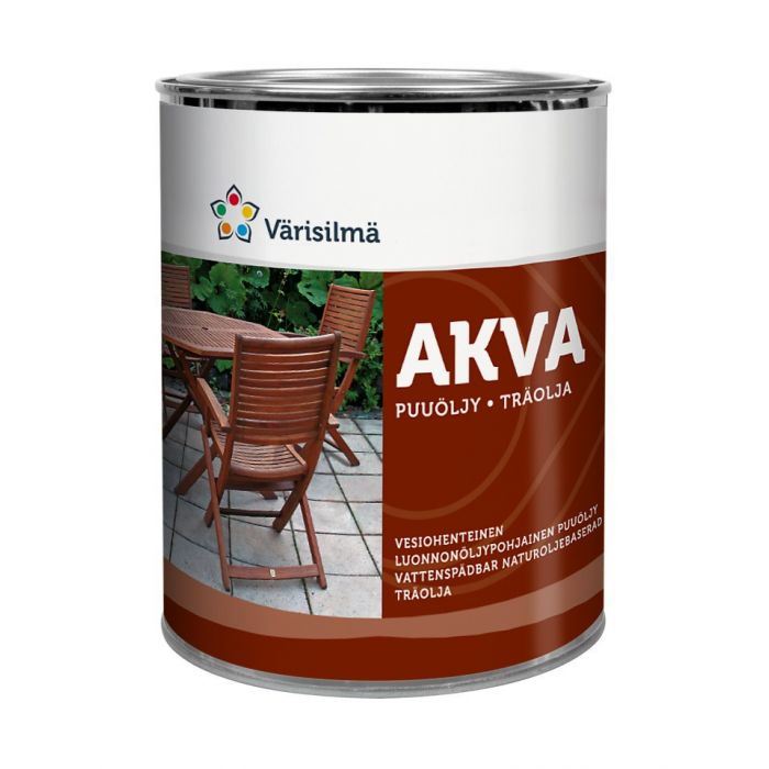 Purkin sisältö sekoitetaan hyvin ennen levitystä. Värisilmä Akva Puuöljy levitetään